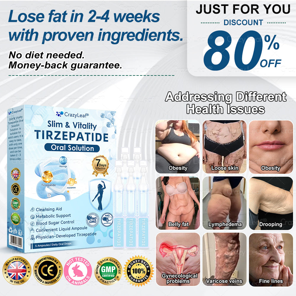 "As a retired teacher, my lifestyle slowed down, with less physical activity and changes in diet, causing my weight to skyrocket. My old colleagues started teasing me, which made me feel embarrassed! I felt like I needed to make a change, but due to severe arthritis from years of standing while teaching, I couldn't engage in physical exercise. So, I decided to look for something that could help control my appetite and address my weight issues, but not in a drastic way. I came across this CrazyLeafยฎ Slim and Vitality Tirzepatide Oral Solution on Facebook and decided to give it a try. After a few days, I already feel a decrease in my appetite and an improvement in my metabolism."